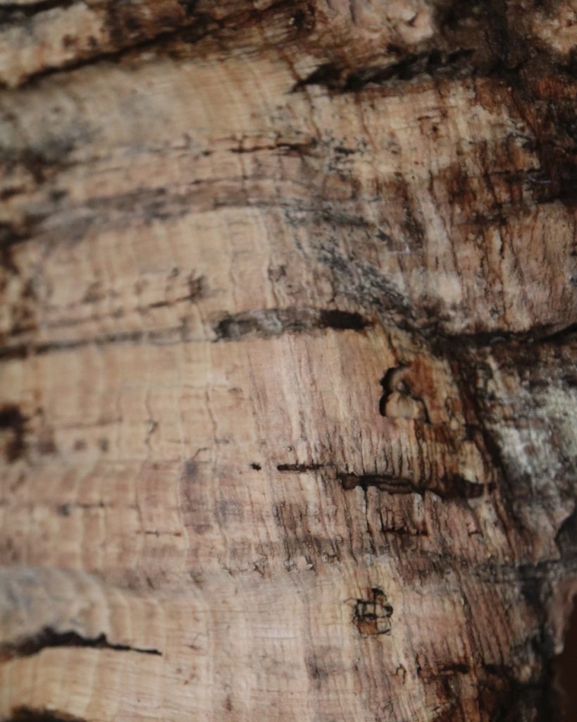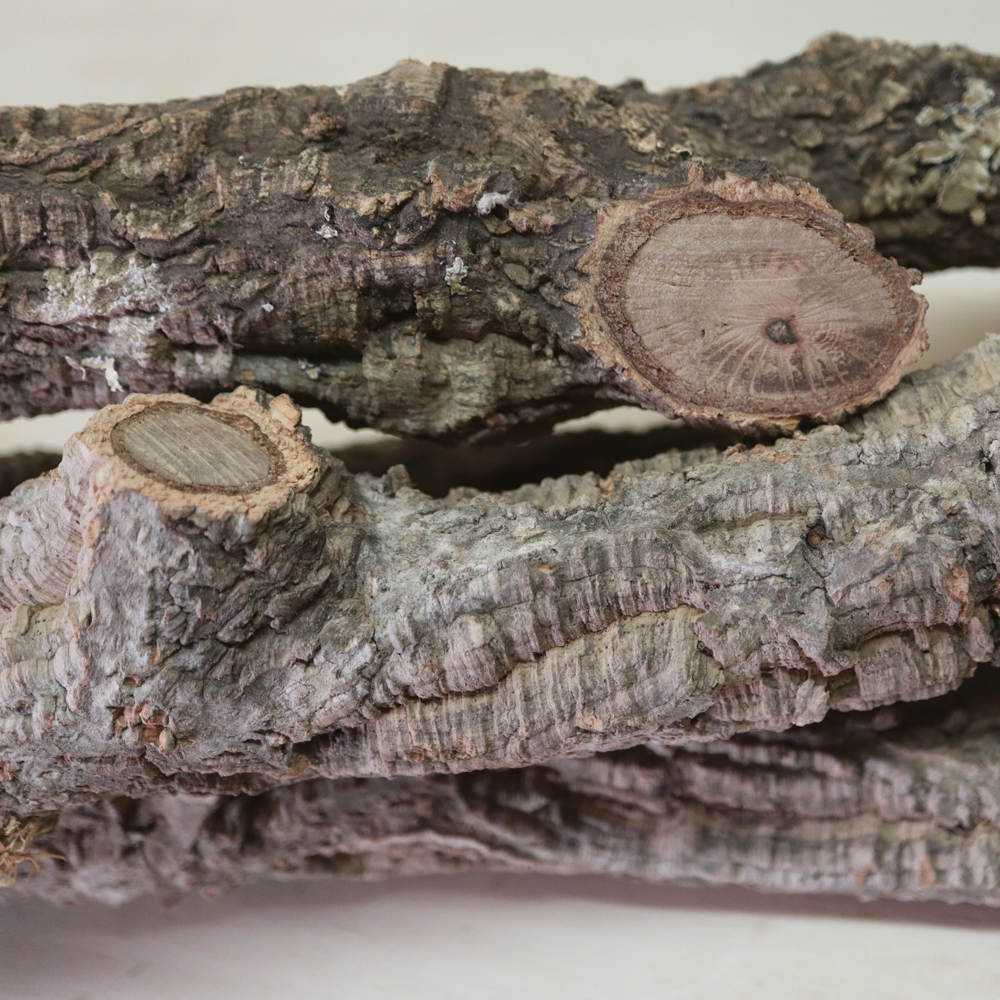 Korkrinde stammt überwiegend aus Portugal. Idealerweise handelt es sich dabei um die Ernte vom lebenden Baum. Bei gefällten, meist kranken oder toten Bäumen löst sich nicht nur die Rinde, sondern oftmals auch Holz vom Stamm mit ab, das bei Feuchtigkeit Schimmel begünstigt. Das Holz lässt sich leider nicht ohne Weiteres von der Rinde lösen.
