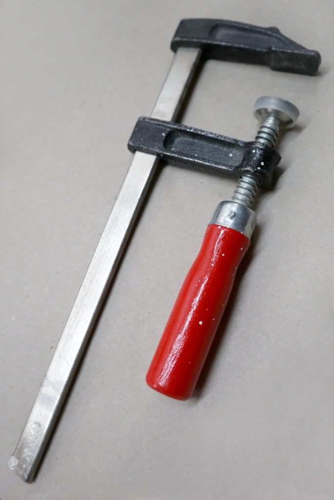 Als ich noch keinen Schraubstock hatte, nahm ich Schraubzwingen, um Äste zum Sägen und Bohren am Tisch fest zu machen.